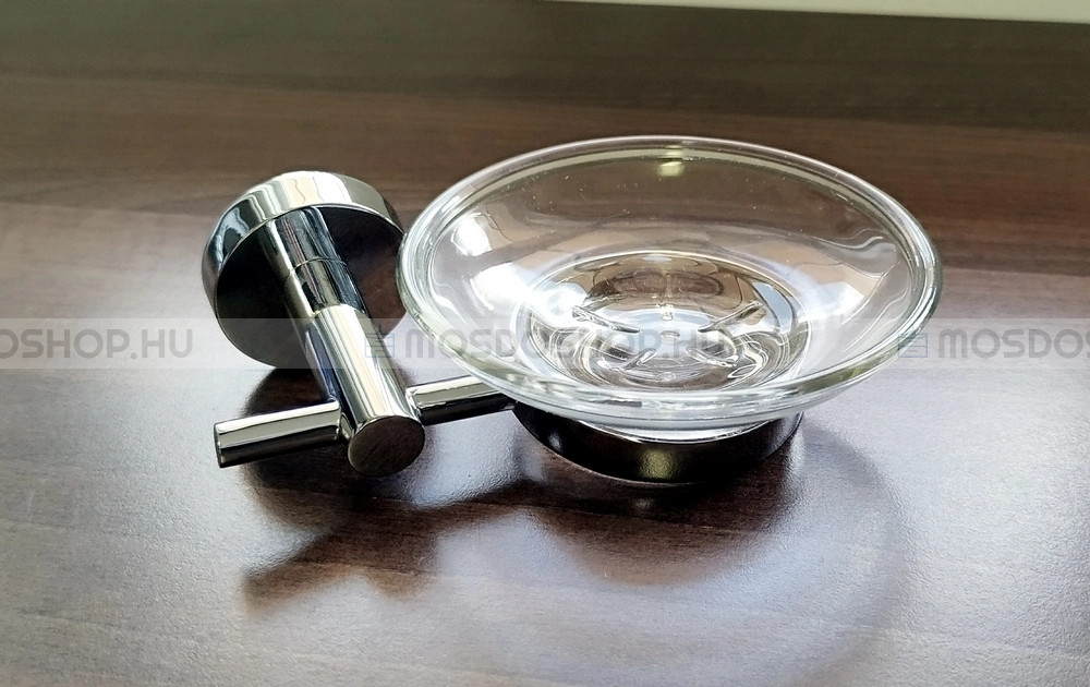 Falra szerelhető szappantartó - Krómozott, víztiszta üveg (SE01951)