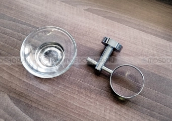 Falra szerelhető, víztiszta üveg tállal, krómozott fali konzollal.