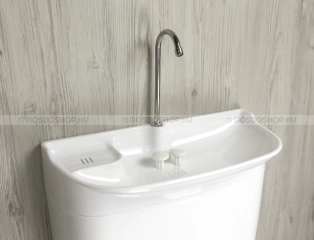 Ez a kompakt kézmosós WC tartály hely- és energiatakarékos, ami nagyon fontos tényező a mai világunkban. Kis helyet igényel, hiszen a WC tartály elhelyezésével egy kézmosót is beépítünk a mellékhelyiségbe plusz vízkiállás és szerelvények nélkül. Praktikus megoldás kis mellékhelyiségekbe, nyaralókba.