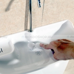 A mosdóegység bal oldalán lehetőség van szappan elhelyezésére. A szappantartó vájat alja lyukacsos, résekkel ellátott, melynek köszönhetően a lecsurgó víz a tartályban landol, így egy csepp víz sem fog kárba veszni.