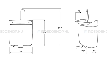 - A tartályt csak balos kivitelben lehet megvásárolni, azaz bal oldalon alul van a vízbetáplálás
