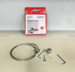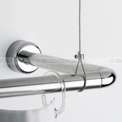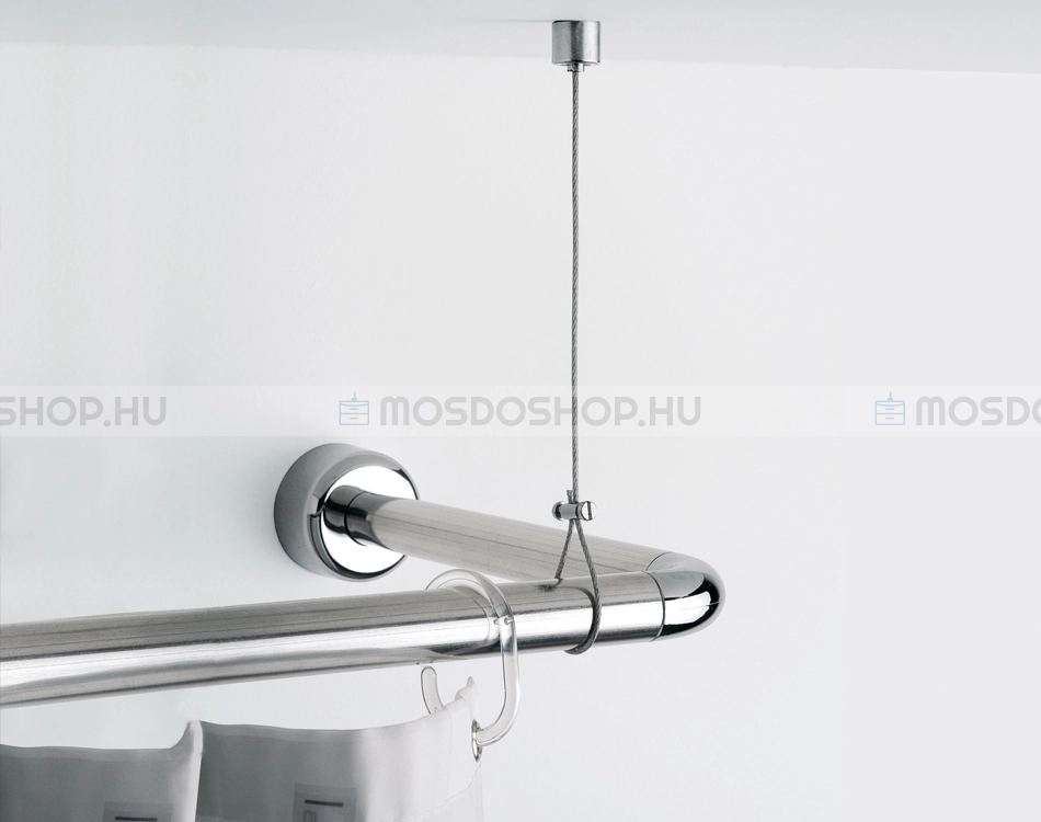Ez az rozsdamentes acél sodronyból készült egyszerű megoldást kínál zuhanyfüggönytartó rúd rögzítéséhez. Ezen kívül alkalmazható zuhanysínhez mennyezeti tartóként is.